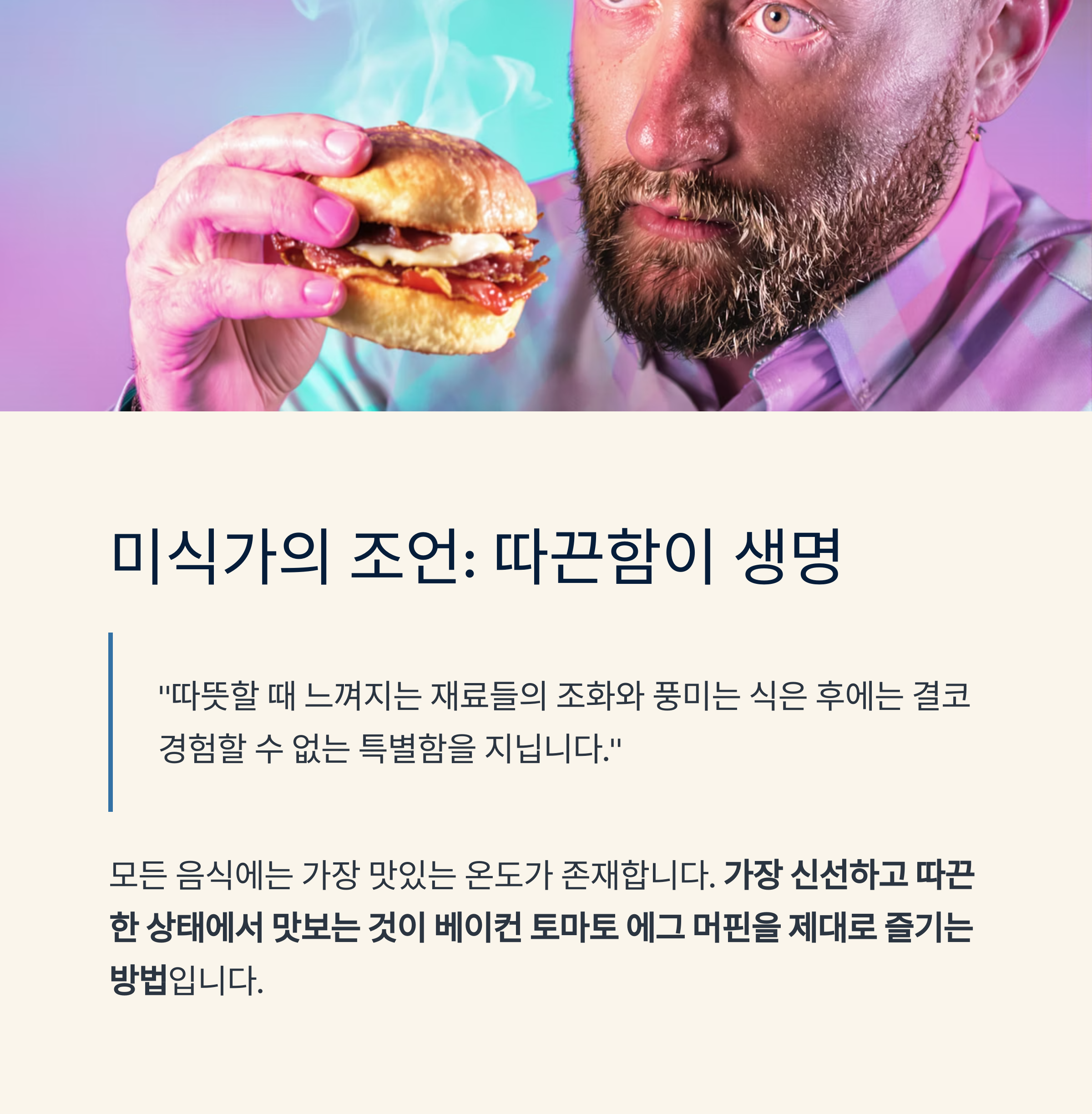 베이컨 토마토 에그 머핀은 그 자체로도 훌륭하지만, 각 재료가 가진 특성을 이해하면 더욱 맛있게 즐길 수 있습니다.