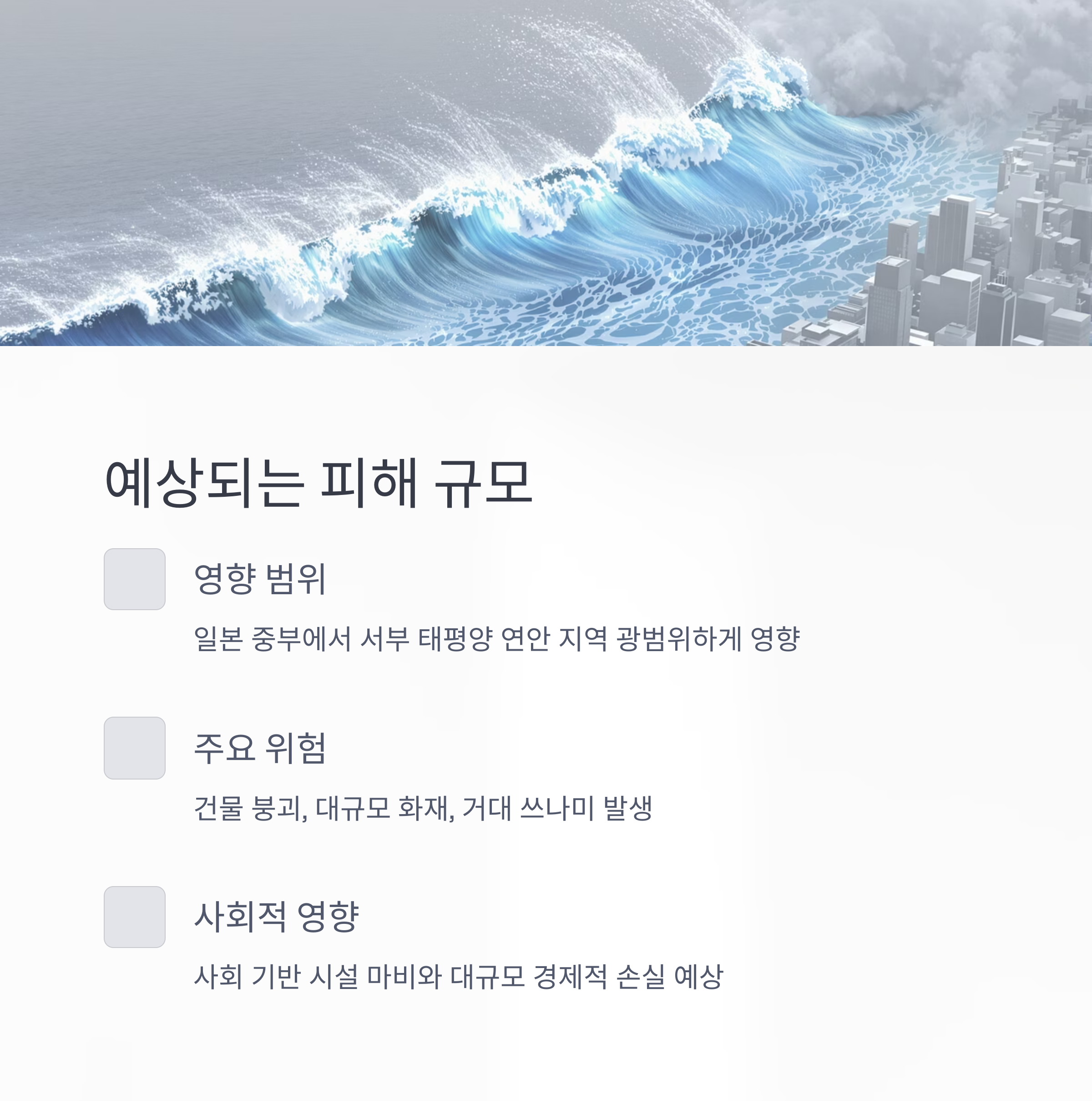 이 지진은 단순한 흔들림을 넘어 강력한 쓰나미를 동반할 가능성이 높아, 해안 지역에 특히 큰 위협이 될 수 있다는 점이 핵심입니다.