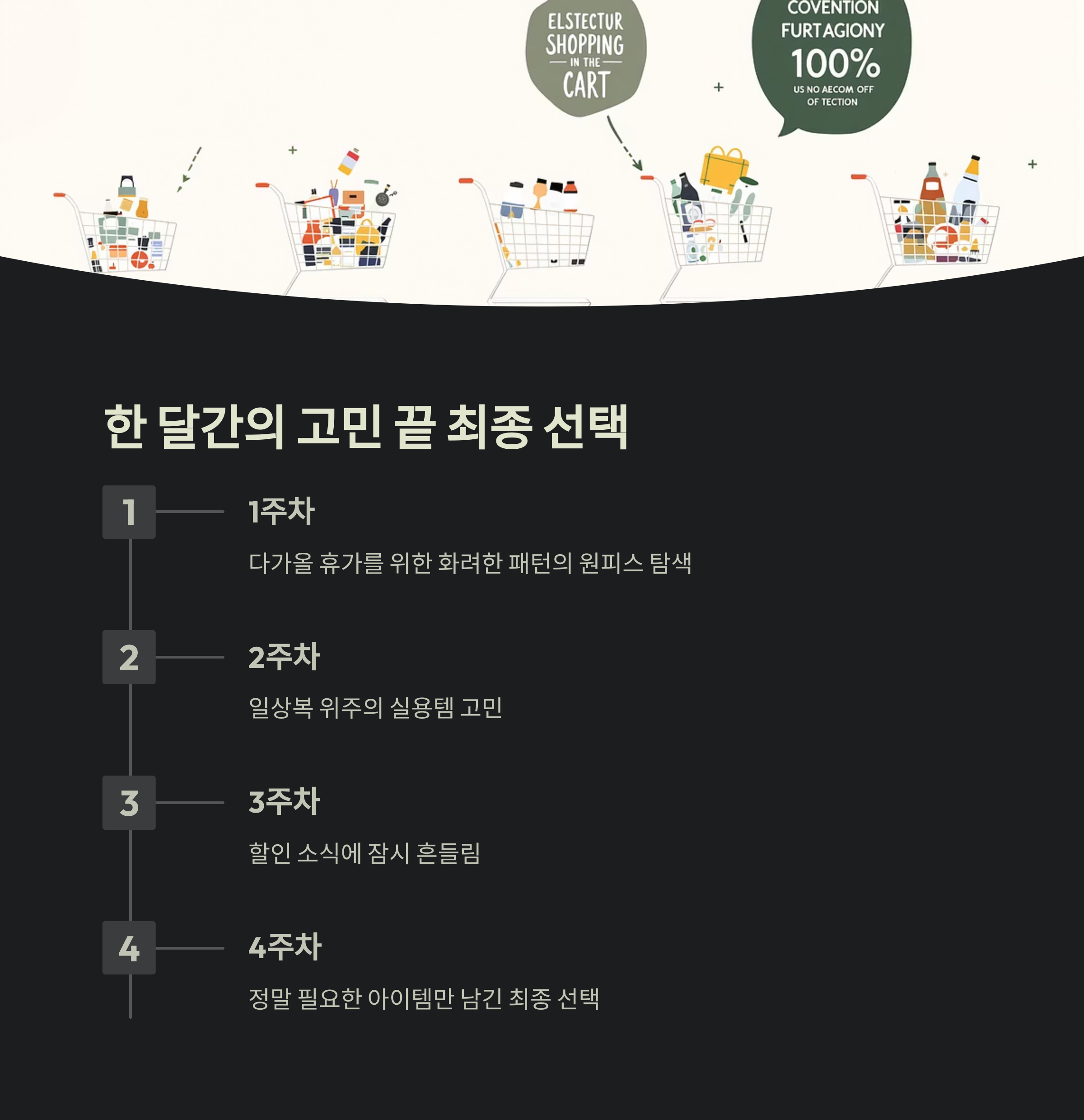 3주차에는 갑자기 찾아온 할인 소식에 잠시 흔들렸지만, 4주차에 접어들면서 정말 필요한 아이템들만 남기기로 결정했습니다.
