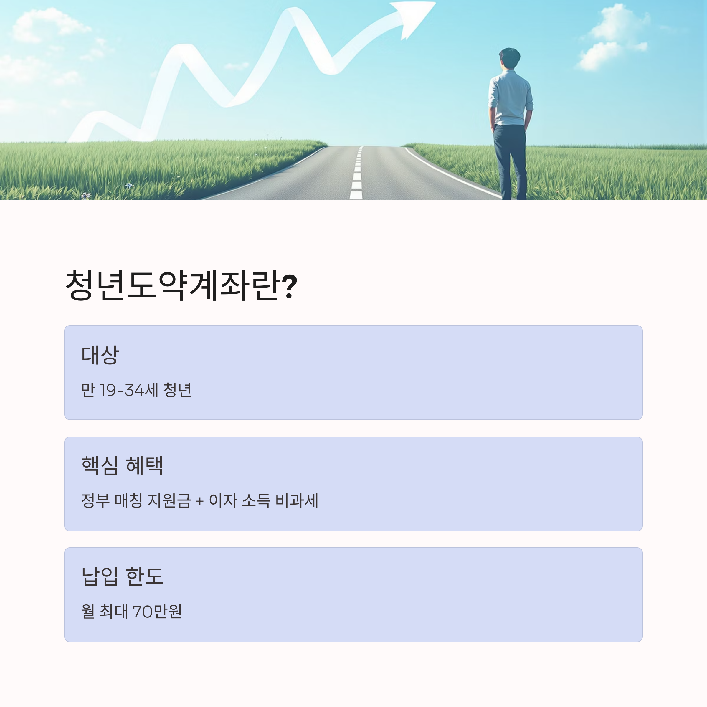청년도약계좌는 만 19세에서 34세 청년이 중장기적 자산 형성을 할 수 있도록 정부가 지원하는 정책형 금융상품입니다.