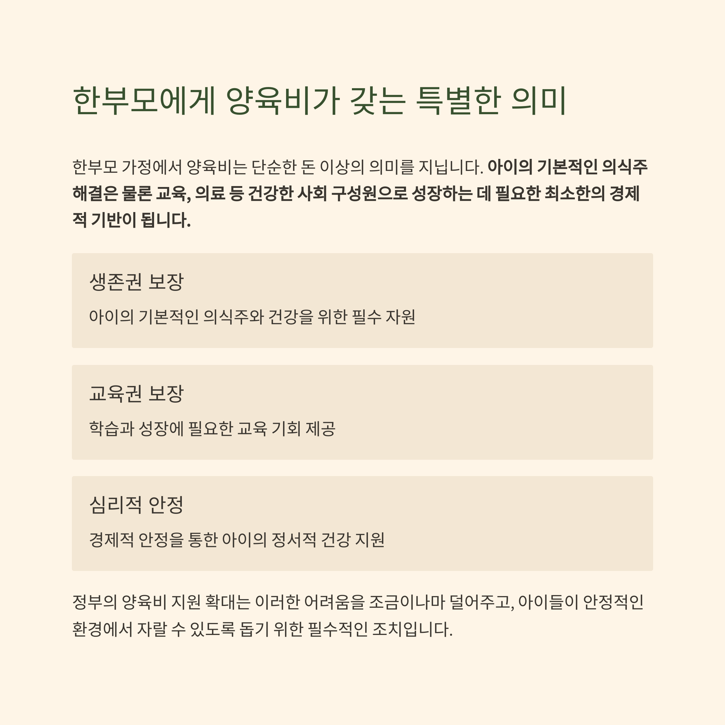 한부모 가정에서 양육비는 단순한 돈 이상의 의미를 지닙니다.